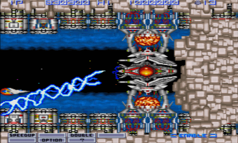 泡ばらまきの時しか当たり判定がないが、LASER 以外の武器だと泡に阻まれてコアまで届かない (OPTION をめりこませられれば別) ので、ボスまでに LASER を取っておくこと。